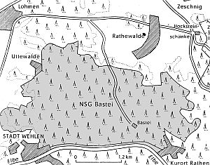 Die Verordnung über das Naturschutzgebiet Bastei erschien in dem „ Sächsischen Verwaltungsblatt“ Nr. 22 am 14 Januar 1938 als: Verordnung über das „Naturschutzgebiet Bastei“ in der Amtshauptmannschaft Pirna. Der Reichsstatthalter in Sachsen - Landesregierung - Landesforstverwaltung - als höhere Naturschutzbehörde - 10. Januar 1938, Nr. 1405a I/37. Das Basteigebiet wurde auf Grund der §§ 12 ff. des Reichsnaturschutzgesetzes zum Naturschutzgebiet erklärt. Das auswewiesene Schutzgebiet hatte eine Größe von ca. 782 ha. Die Grenzen verliefen in etwa zwischen der Elbe, dem Amselgrund, der Straße zwischen Lohmen und Rathewalde und dem Wehlener Grund. In der Karte ist das Gebiet des Naturschutzgebietes grau hinterlegt.[1]