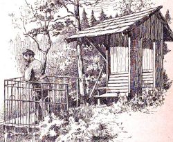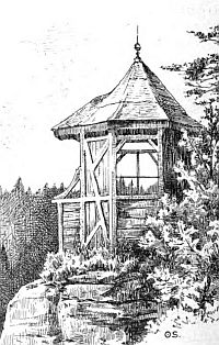 Die schöne Aussicht von diesem kleinen Felsvorsprung und die Unbeständigkeit des Wetters brachten ihn auf die Idee, an dieser Stelle eine überdachte Schutzhütte zu errichten.